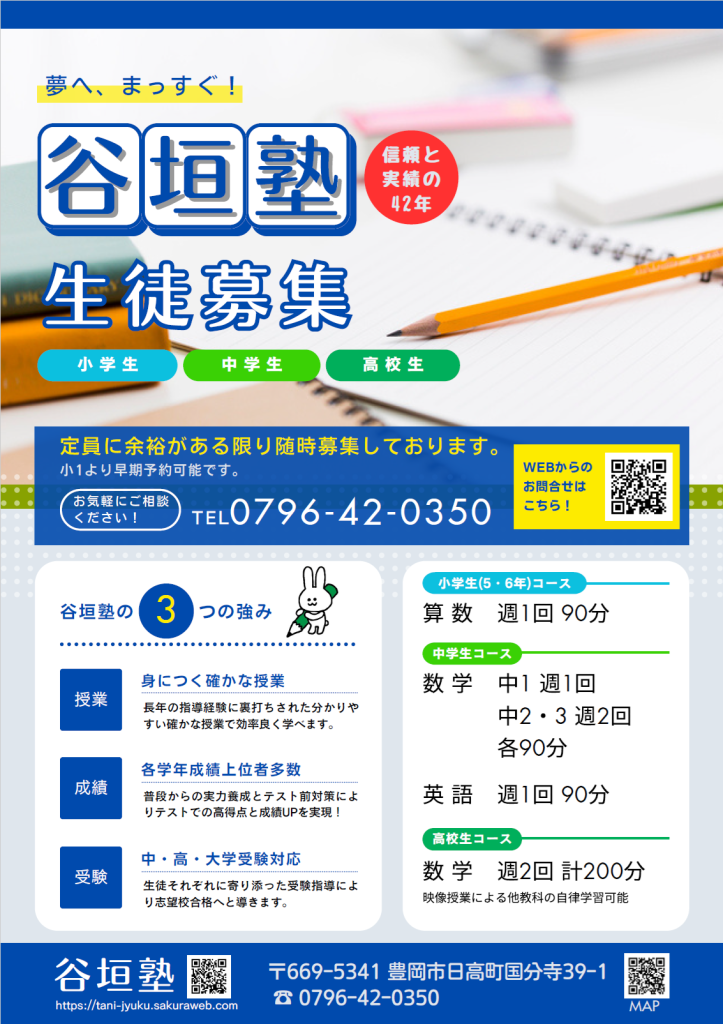 豊岡市日高町にある小5~高3まで安心して通える学習塾